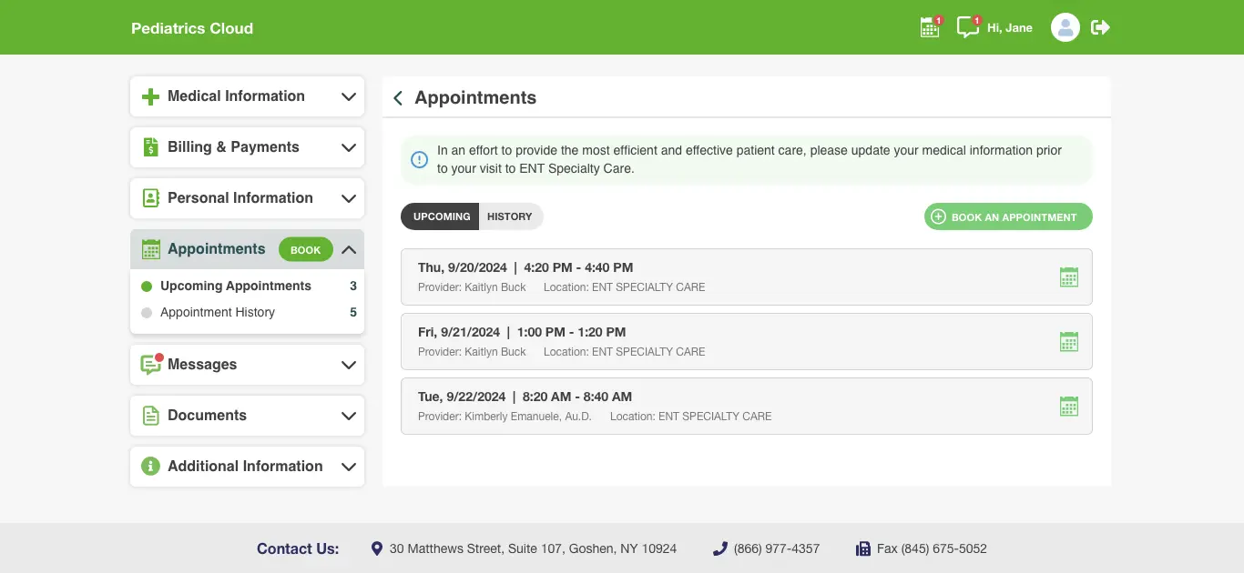 - Update demographics, insurance, and medical history before visits